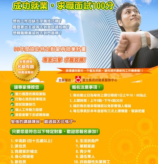 (免費)就業講座,讓你求職面試步步為贏!(99/2/3~99/3/26,共六場)